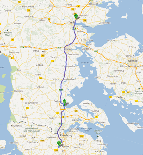 Der Rallyestart sollte am 08. Juni in Vejle, Dänemark erfolgen. Google Maps befragt und siehe da, es ist zu weit für eine direkte Anfahrt.